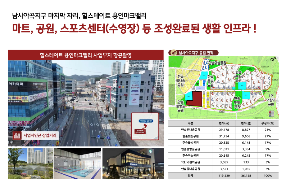 단지 주변은 이미 남사IC를 중심으로 한 상업지 개발이 활발히 진행 중입니다. 대형마트, 카페거리, 음식점 등이 순차적으로 입점 중이며, 남사읍 행정복지센터와 공공기관 이전으로 행정 편의성도 높아졌습니다. 학군 측면에서는 기존 초·중·고 인프라 외에도 인근 신설 학교 부지가 확보되어 있습니다. 단지 내 어린이집, 커뮤니티시설, 피트니스존 등 생활 편의시설이 풍부해 자녀가 있는 실수요자에게도 높은 만족도를 제공합니다.