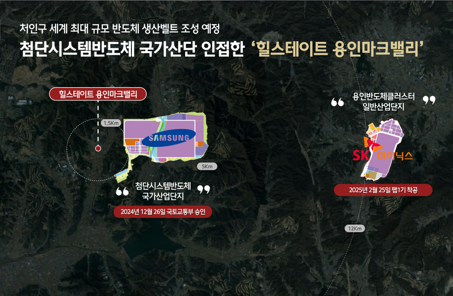 용인 플랫폼시티는 경기도 대표 복합 개발사업으로, 판교테크노밸리의 약 1.5배 규모에 달하는 자족 신도시형 프로젝트입니다. GTX-A 용인역과 연계되어 교통과 산업, 주거가 결합된 형태로 개발이 진행 중입니다. 또한 남사 신도시 확장 구역과 산업단지 조성계획이 인접해 있어, 향후 배후수요와 생활권 확장은 더욱 강화될 전망입니다. 이러한 대규모 개발사업은 마크밸리 입지의 장기적인 프리미엄 형성에 직접적인 영향을 미칩니다.